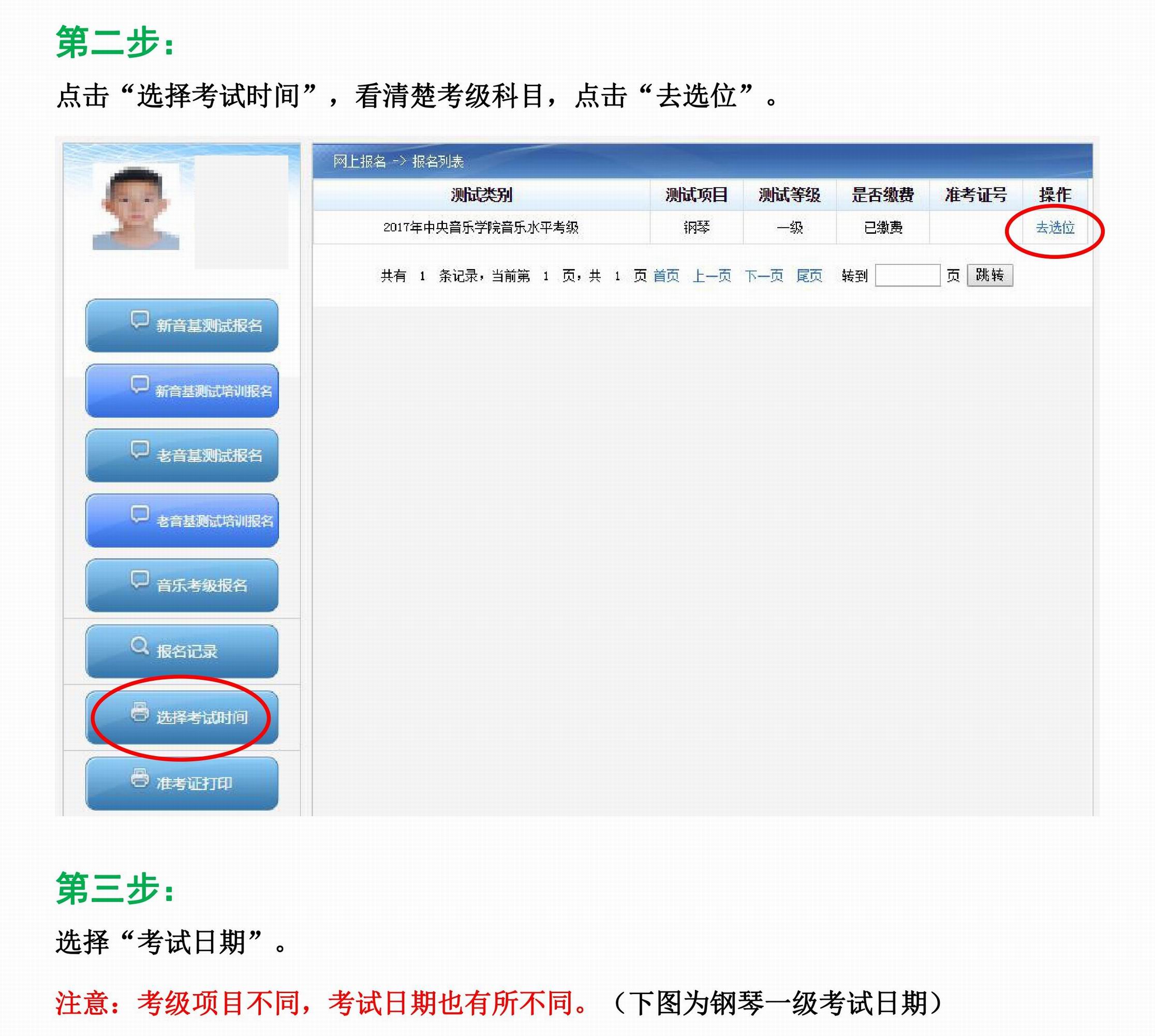 2017年中央音乐学院音乐考级选位流程